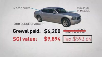 萨斯喀彻温省政府保险根据红皮书价值将汽车价值用于税收目的。对于Grewal而言,这与他所支付的价格相差超过3,600元。