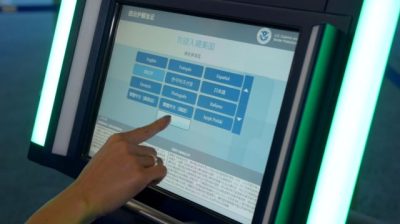 我们的自助通关机器设有中文