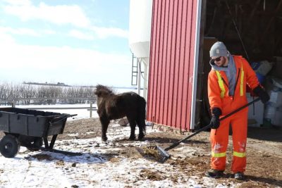 这个农场在萨斯卡通以东20英里的地方,圣丹尼斯附近的5号高速公路旁边。我在哪里就像影子一样,当了克劳德一整天的跟班儿,为的就是了解寒冷季节农场会发生哪些情况,以及春季播种初期的准备工作。 在开车到克劳德农场时,我看到他已经在忙着工作了。他正骑着他的雪橇在不同场地间穿梭。之后我也加入了这份工作。